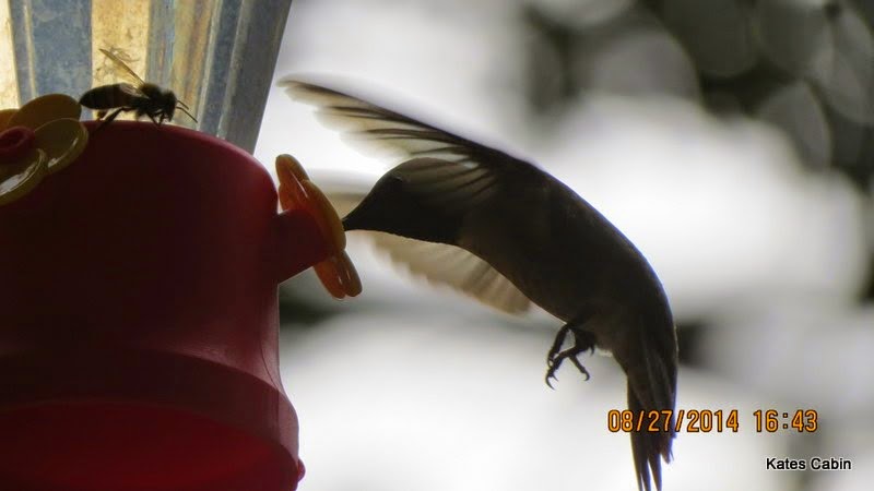 One thing about shooting photos outside in the same location is that the light is always changing. On this afternoon of 8-27, clouds were rolling through. Back lighting produced a silhouette effect on the hummingbirds and feeders. I have shared Wikipedia info below about "Silhouette". The time of day in the photos is 4:25pm. The birds are more active at the feeders during the evening hours as well as early in the morning. It is still around 100 degrees and they seem to rest in the trees mid day. Thank you all for coming by the migration and sharing with your friends! Enjoy!