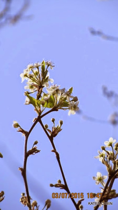 You are just in time for a little snack of sunflower seeds at the seed feeder! Just a reminder to hang a bird feeder or scatter seed for the birds who are in various stages of the Spring Migration. These cardinals and squirrels are the 'Official Welcoming Committee' for the bird sanctuary. When the migrants see the bright red flag of feathers, they are likely to make a stop over for a snack, so keep your local backyard birds happy! Also, shared below are more pear blossoms My spring has been on hold for a week of cloudy, rainy weather. Waiting for the Sun! Enjoy!